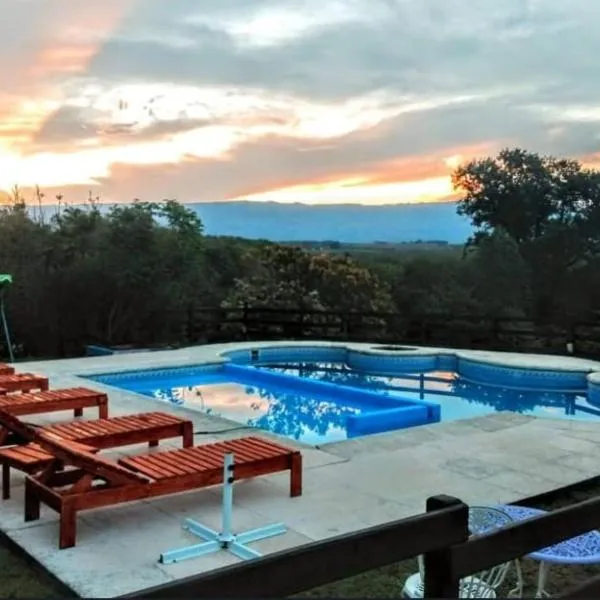 Located in Villa Yacanto, Gran Cabaña en Villa Yacanto provides accommodation with a private pool, a balcony and mountain views. This property offers access to a terrace and free private parking.