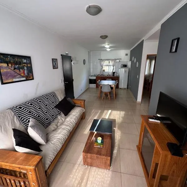 Departamento en Alquiler en Carlos Paz坐落于La Porteña,配备免费WiFi和空调。客人可以使用带室外泳池的花园。内部提供私人停车位。 所有房间均配有私人浴室、平板电视、设施齐全的厨房和阳台。 这家公寓配备露台供客人使用。 布兰卡港机场距离住宿有208公里。