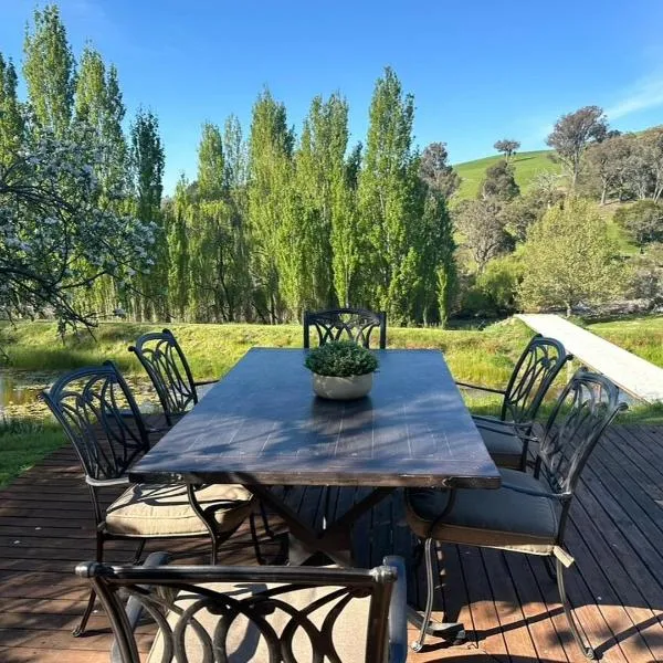 Gables Riverside Retreat坐落于新南威尔士的Berremangra,拥有花园。这家度假屋配有免费私人停车位。客人可以在周边地区体验徒步、垂钓和划独木舟等活动。 这家空调度假屋配有4间独立卧室、起居室、带冰箱和洗碗机的设施齐全的厨房以及1间浴室。这家度假屋还配备平板电视以及1间带吹风机的浴室。 堪培拉机场距离住宿有121公里。