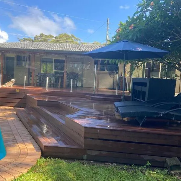 Beachside 4 bedroom Home in Emerald Beach位于翡翠海滩,靠近翡翠海滩(Emerald Beach),距离大香蕉有16公里,配备花园景阳台、私家海滩和露台。这家度假屋提供免费私人停车位、共用厨房和免费WiFi。 这家空调度假屋配有4间卧室、起居室、带冰箱和咖啡机的设施齐全的厨房以及3间带淋浴设施和吹风机的浴室。