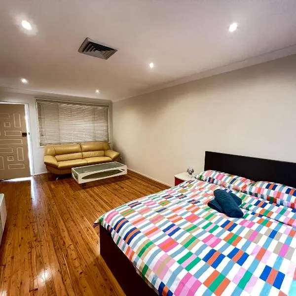 H Room位于保尔罕希尔斯,距离CommBank Stadium有8.6公里,距离澳洲新西兰银行体育场有18公里,距离奥尔丰竞技场有18公里。这家家庭式住宿距离悉尼展览场地有19公里,距离二百年公园有20公里。 这家家庭式住宿提供毛巾和床上用品。 这家家庭式住宿距离悉尼月神公园有30公里,距离澳大利亚国家海事博物馆有32公里。悉尼金斯福德史密斯机场距离住宿有36公里。