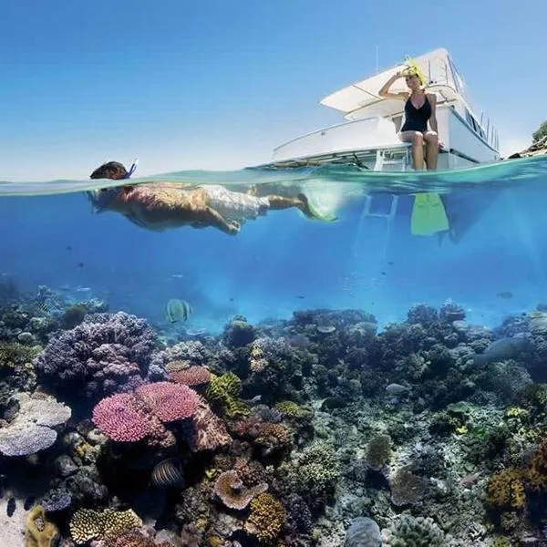 Reef View Hotel酒店位于猫眼海滩(Catseye Beach)正对面,配有餐厅、酒吧和室外游泳池,其每间客房均提供免费WiFi以及带花园或珊瑚海(Coral Sea)景致的私人阳台。房价包括汉密尔顿岛机场(Hamilton Island Airport)的免费返程交通服务或码头至酒店的交通服务。 Reef View Hamilton...