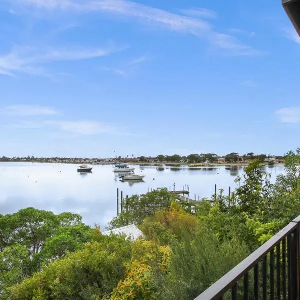 Waterfront 2-bedroom apartment with WiFi, AC in Lakes Entrance享有池景,提供露台和庭院,距离Bairnsdale火车站约有37公里。这家自助式公寓拥有私人泳池、花园、烧烤设施、免费WiFi和免费私人停车位。 这家空调公寓配有2间卧室、起居室、带冰箱和电热水壶的设施齐全的厨房以及1间带淋浴设施和热水浴池的浴室。
