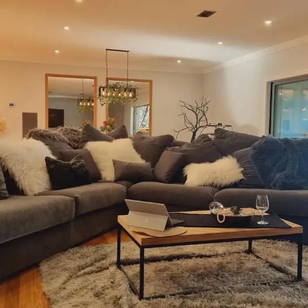 Sunrise House位于新南威尔士的Hazelbrook,配有阳台,享有花园景。这家住宿距离卡通巴美景世界有18公里,提供花园和免费私人停车位。 这家度假屋配备5间卧室、带冰箱和洗碗机的厨房以及3间带淋浴设施、吹风机和洗衣机的浴室。这家度假屋还配备3间带浴缸的浴室。 这家度假屋距离三姐妹峰有18公里,距离三姐妹缆车有18公里。悉尼金斯福德史密斯机场距离住宿有89公里。