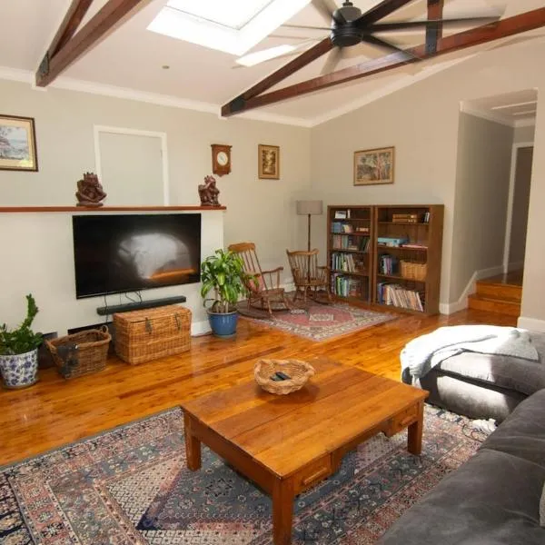 Emerald Cottage in the Blue Mountains位于新南威尔士的Faulconbridge,配有阳台,享有花园景。这家住宿距离卡通巴美景世界有30公里,提供花园和免费私人停车位。 这家空调度假屋配有3间卧室、起居室、带冰箱和咖啡机的设施齐全的厨房以及1间带淋浴设施和吹风机的浴室。这家度假屋还配备平板电视、休息区、洗衣机以及1间带浴缸的浴室。