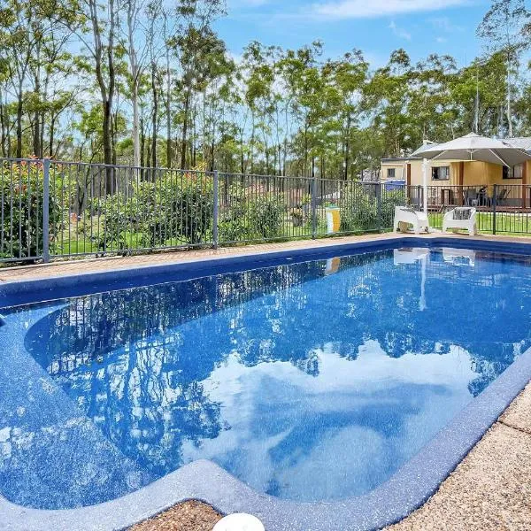Kelman Cottage with pool and beautiful native wildlife位于新南威尔士的Belford,配有露台。这家住宿提供私人泳池、免费WiFi和免费私人停车位。 这家度假屋配有4间卧室、带冰箱和洗碗机的厨房以及2间带淋浴设施、吹风机和洗衣机的浴室。这家空调度假屋还提供平板电视、休息区以及2间带浴缸的浴室。 这家度假屋配备室外泳池和烧烤设施供客人使用。
