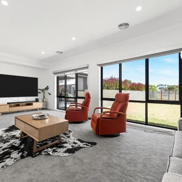 StayAU Gorgeous 5BR Pet Friendly BBQ Home Geelong位于Leopold,距离吉朗火车站有12公里,距离吉朗北火车站有14公里,配备阳台和免费WiFi。这家住宿距离南吉朗车站有10公里,提供花园和免费私人停车位。 这家空调度假屋配有1间独立卧室、起居室、设施齐全的厨房以及3间浴室。这家度假屋也为客人提供3间浴室。