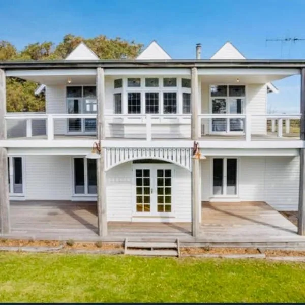 Foreshore Retreat坐落于Corinella,距离派肯汉姆火车站仅有42公里,配备海滨住宿、花园、烧烤设施和免费WiFi。这家度假屋提供带庭院的客房。 这家空调4卧室度假屋提供3间浴室,配备浴缸。这家度假屋配备海景阳台,也配备平板电视、3间带热水浴池和吹风机的浴室以及带冰箱、洗碗机和烤箱的设施齐全的厨房。 这家度假屋提供桑拿房。