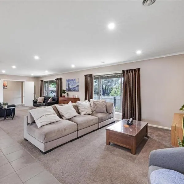 Relaxed and stylish -self check in, secure parking坐落于维多利亚的Mount Clear,拥有露台,享有花园景。这家住宿距离巴拉拉特火车站有5.3公里,配备花园和免费私人停车位。 这家空调度假屋配有3间卧室、起居室、带冰箱和咖啡机的设施齐全的厨房以及1间带淋浴设施和吹风机的浴室。这家度假屋还提供带有线频道的平板电视以及1间带浴缸的浴室。