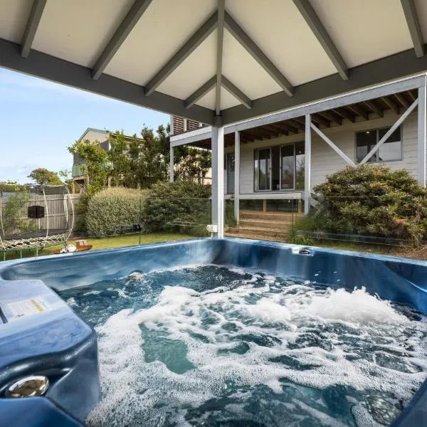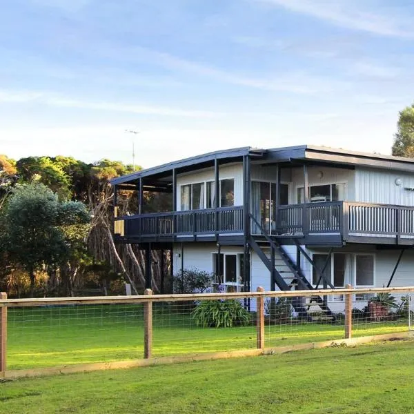 Sandy Toes Retreat坐落于维多利亚的史密斯海滩,拥有阳台。这家空调住宿距离史密斯海滩(Smiths Beach)有7分钟步行路程,为客人提供免费WiFi,内部提供私人停车位。 这家度假屋提供5间卧室、带冰箱和洗碗机的厨房以及2间带热水浴池、吹风机和洗衣机的浴室。这家度假屋还配备平板电视以及2间带浴缸的浴室。 这家度假屋配备花园、烧烤设施和儿童游乐场。