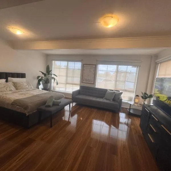 Brand new bedroom next to train station享有花园景,配备私家海滩和庭院,距离漫威体育馆约有18公里。这家空调住宿距离墨尔本动物园有18公里,为客人提供免费WiFi,内部提供私人停车位。 这家家庭式住宿配备毛巾和床上用品。 这家家庭式住宿提供阳光露台。
