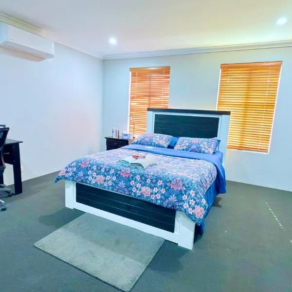 Bj comfy home坐落于西澳大利亚的Wellard,距离珀斯会展中心有不到39公里,配备免费WiFi、烧烤设施、花园和免费私人停车位。 部分房间配有空调、平板电视、洗衣机、电热水壶和厨房. 客人还可以在共用休息室放松身心。 这家度假屋距离西澳大利亚板球场有39公里,距离珀斯音乐厅有40公里。珀斯机场距离住宿有48公里。