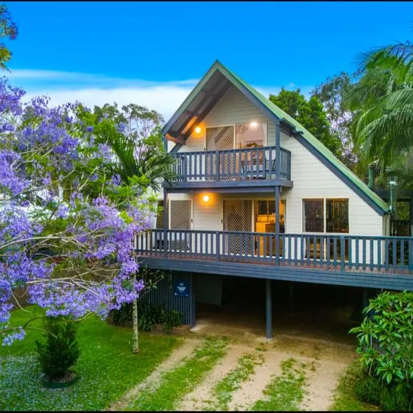 Frangipani Cottage为一家自助式住宿,坐落于Wooli,靠近伍利海滩(Wooli Beach)。内部提供私人停车位。 这家空调3卧室度假屋提供2间浴室,配备淋浴设施。这家度假屋配备阳台,也配备厨房和2间浴室。 科夫斯港机场距离住宿有106公里。