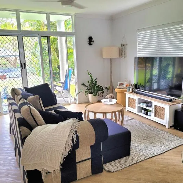 Pandanus Villa - #3位于耶蓬,距离叶蓬主海滩(Yeppoon Main Beach)有2.6公里,距离基佩尔湾码头有10公里,距离Central Queensland University有33公里。内部提供私人停车位。 这家别墅配有2间卧室、1间浴室、床上用品、毛巾、平板电视、设施齐全的厨房以及花园景露台。这家空调别墅还提供休息区、洗衣机以及1间带淋浴设施的浴室。