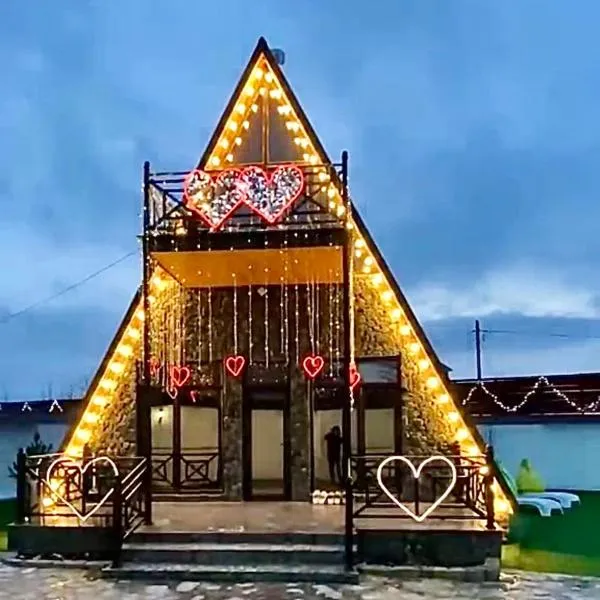 Gabala A Frame shakh frame qebele位于Nohurqışlaq,配备带免费WiFi的花园景客房,配有户外游泳池和露台。这家自助式别墅拥有私人泳池、花园和免费私人停车位。 这家空调别墅配有3间独立卧室、起居室、设施齐全的厨房以及2间浴室。这家别墅也配有2间浴室。