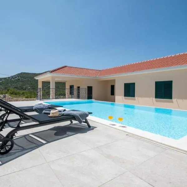 Villa Rosa享有山景,提供季节性室外泳池,距离斯通墙约有33公里。这家自助式别墅拥有私人泳池、花园、烧烤设施、免费WiFi和免费私人停车位。 这家1卧室别墅提供起居室、带卫星频道的平板电视、带冰箱和洗碗机的设施齐全的厨房以及2间带淋浴设施的浴室。这家空调别墅还配备休息区、洗衣机以及2间带免费洗浴用品的浴室。 这家别墅配备阳光露台供客人使用。 莫斯塔尔国际机场距离住宿有65公里。