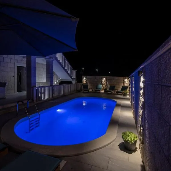 Villa Panorama - Private heated pool and jacuzzi with ocean view位于Ivanica,配备带免费WiFi的市景客房,配备户外游泳池、花园和共用休息室。这家别墅配有免费私人停车位。客人可以在周边地区体验徒步、骑行和乒乓球等活动。...