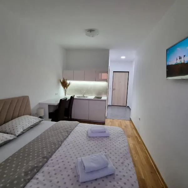 Apartmani Mimax位于特雷比涅,享有市景,配有免费WiFi和免费私人停车位,距离下城购物中心有30公里。 每间房间都配备露台、带冰箱的设施齐全的厨房、带沙发床休息区、平板电视以及带淋浴设施和免费洗浴用品的私人浴室。所有房间均提供山景庭院。 客人还可以在花园内放松身心。 这家公寓距离奥兰多石柱有31公里,距离普洛斯门有31公里。