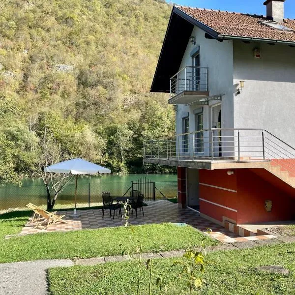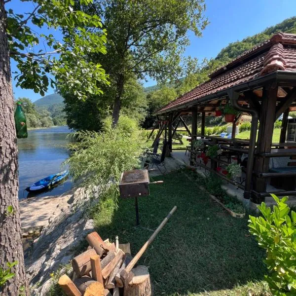 Vikendica Krupa na Vrbasu位于巴尼亚卢卡,配备客房和阳台。这家空调住宿距离Kastel Fortress有25公里,为客人提供免费WiFi,内部提供私人停车位。 这家度假屋提供露台,享有河景,配有1间卧室、起居室、平板电视、带冰箱的设施齐全的厨房以及2间带淋浴设施的浴室。2间浴室提供浴缸和免费洗浴用品。 这家度假屋的客人可在附近体验骑行,或使用花园。