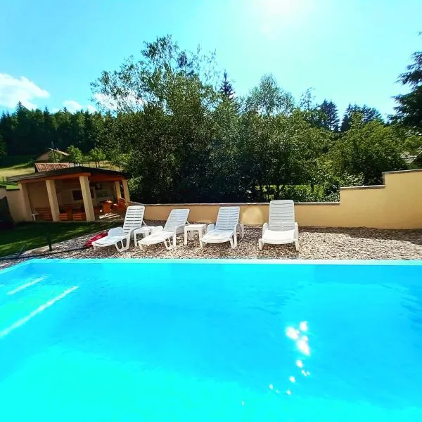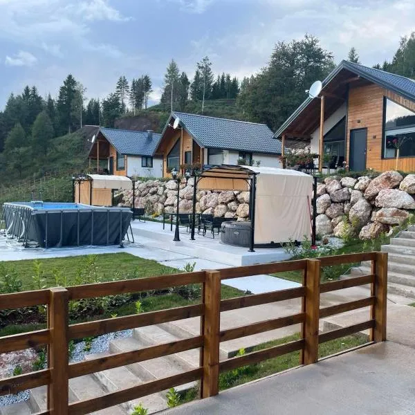 Sunnyside apartments, Pale, Ravna Planina, 4 kuce, 16 osoba坐落于Kruščanje,配备按季节开放的室外泳池、免费WiFi、花园和露台。内部提供私人停车位。 部分房间配有卫星频道平板电视、带冰箱的设施齐全的厨房,以及带浴缸或淋浴设施和免费洗浴用品的私人浴室。 这家度假屋的客人可以使用热水浴池。