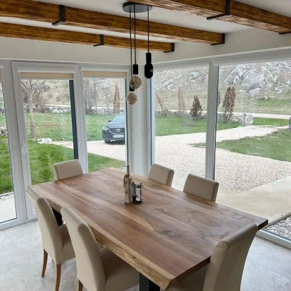 Vikendica Blidinje, Ranch Mikulic坐落于Blidinje,配有客房和阳台。这家自助式度假屋拥有花园、烧烤设施、免费WiFi和免费私人停车位。 这家度假屋提供3间卧室、1间浴室、平板电视、用餐区、设施齐全的厨房以及山景露台。这家度假屋也配有休息区以及1间带淋浴设施、浴缸和吹风机的浴室。 住宿内部配备儿童游乐场。客人可以在这家度假屋附近体验徒步。