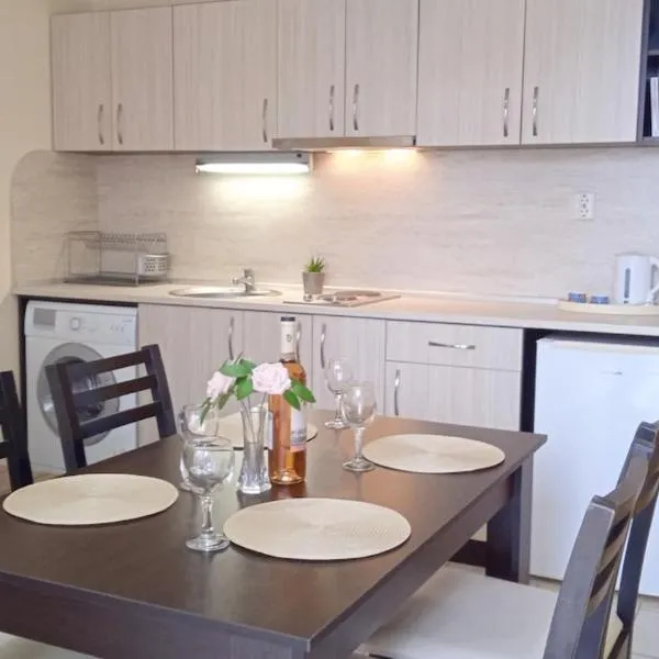Diamond Beach Sarafovo by KP坐落于布尔加斯,配备免费WiFi。客人可以使用季节性室外泳池、花园和露台。 房间均配有空调、带用餐区的设施齐全的厨房、平板电视以及带淋浴设施和免费洗浴用品的私人浴室。部分房间拥有阳台和/或海景或池景庭院。 这家公寓式酒店距离萨拉福沃中央海滩(Central Beach Sarafovo)有2分钟步行路程,距离航空博物馆有1.8公里。