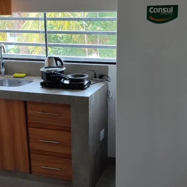 Apartamento de 1 dormitorio para persona sola o pareja位于圣克鲁斯,提供花园和酒吧,距离Sacred Art Museum有19分钟步行路程,距离Metropolitan Cathedral有1.6公里,距离Gabriel Rene Moreno Autonomous University有1.8公里。这家空调住宿距离24th of...