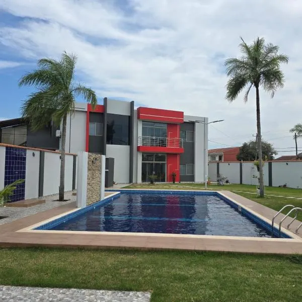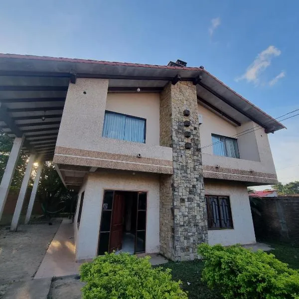 Casa Quinta Santa Cruz de la Sierra位于圣克鲁斯,距离Sacred Art Museum有13公里,提供免费自行车、免费私人停车位、户外游泳池和花园。这家住宿配有共用休息室、露台和酒吧。住宿为客人配备共用厨房、礼宾服务和外币兑换服务。 住宿为所有客人提供免费WiFi。部分客房提供阳台。这家旅馆的每间客房都提供床上用品和毛巾。