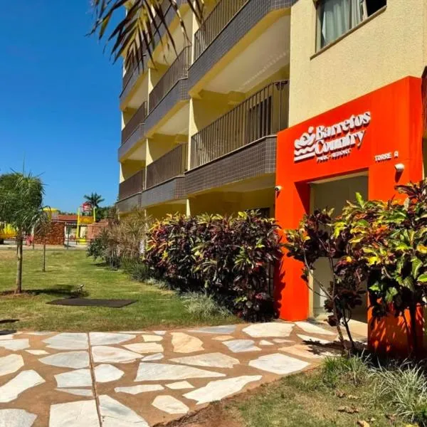 Condomínio Barretos Thermas Park - Flat Parque do Peão位于巴雷图斯,距离橙子温泉水上乐园有48公里,提供户外游泳池、免费私人停车位、健身中心和花园。这家住宿提供的设施包括24小时前台、礼宾服务以及免费WiFi。这家酒店提供露台,享有池景。客人可以在餐厅享用餐点或在酒吧享用饮品。 这家酒店的每间客房都提供衣柜。Condomínio...
