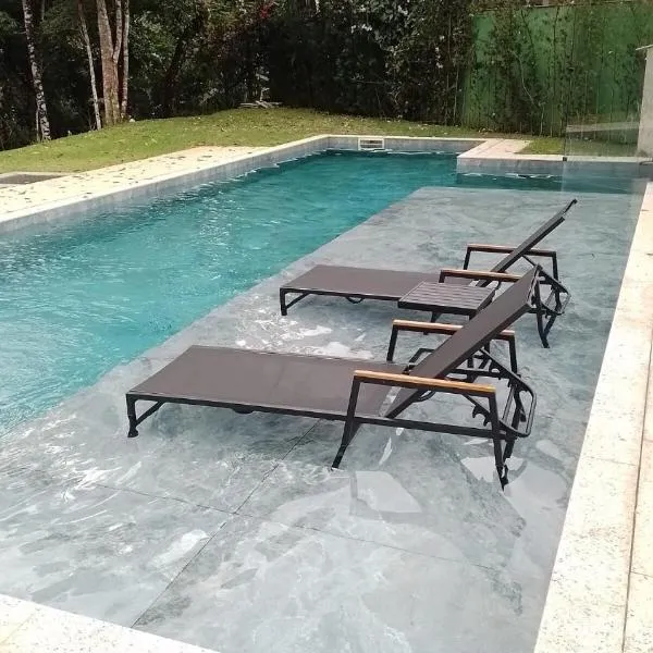 Located in Domingos Martins, Hotel Vista Azul ES offers a balcony with mountain and pool views, as well as a year-round outdoor pool, sauna and hot spring bath.