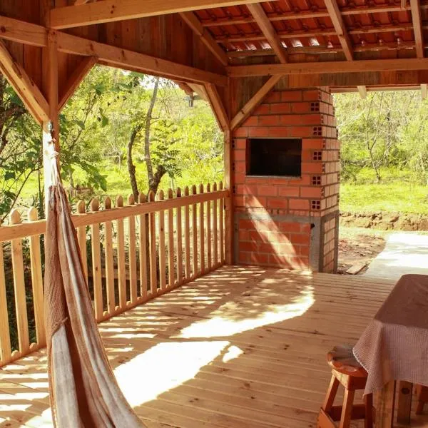 Chalé de Campo com hidro - Chalé Flores do Campo坐落于坎普阿莱格里,提供带阳台和免费WiFi的自助式住宿。这家自助式小木屋拥有花园和免费私人停车位。 这家空调小木屋配有1间卧室、起居室、带冰箱和电热水壶的设施齐全的厨房以及1间带淋浴设施和热水浴池的浴室。这家小木屋还配备平板电视以及1间带吹风机的浴室。 这家小木屋提供热水浴池。