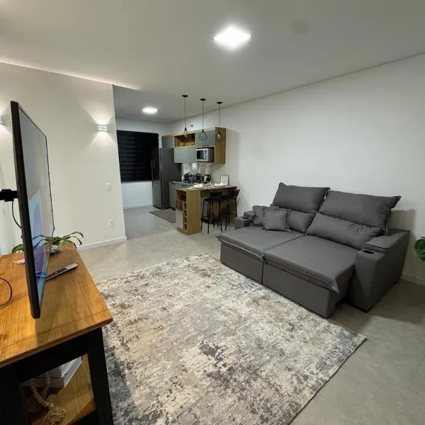 Kitnet 1位于里奥内格里纽。这家公寓坐落于一栋建造于2018年的建筑内,配备免费WiFi。 这家空调公寓配有2间卧室、起居室、带冰箱和咖啡机的设施齐全的厨房以及1间带淋浴设施和免费洗浴用品的浴室。这家公寓还提供休息区、洗衣机以及1间带吹风机的浴室。 约恩维利-劳罗卡内罗德洛约拉机场距离住宿有92公里。