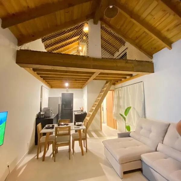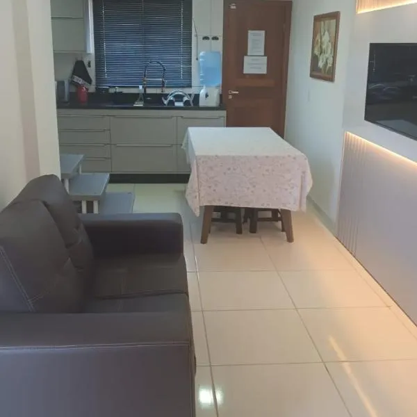 Located within 80 metres of Praia da Pinheira and 35 km of Garopaba Bus Station in Palhoça, Apart-Hotel "Encantos do Mar" - Beira Mar provides accommodation with seating area.
