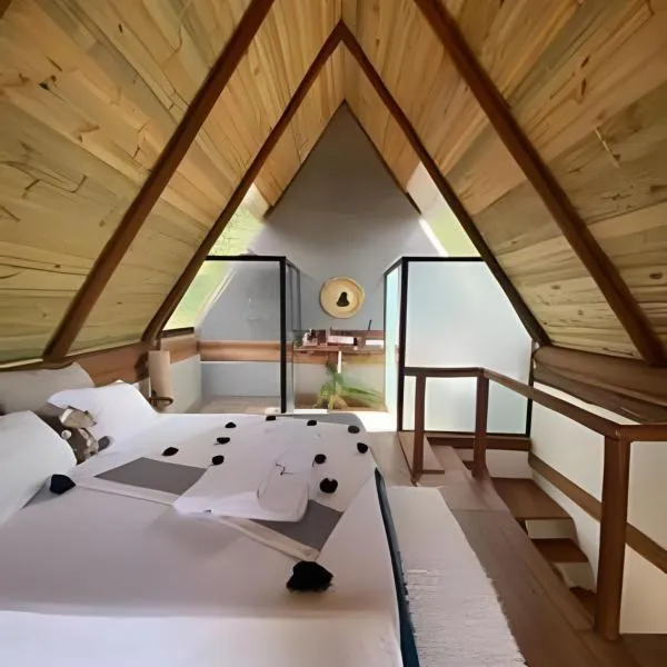 Bangalô Rústico Duplex - Retiro Andaluz坐落于布鲁马迪纽,距离因霍提姆博物馆有32公里,提供阳台、花园和免费WiFi。这家小木屋配有免费私人停车位。客人可以在周边地区体验徒步和飞镖等活动。 这家小木屋提供1间卧室、2间浴室、床上用品、毛巾、平板电视、用餐区、设施齐全的小厨房以及山景露台。这家小木屋还配备休息区以及2间带淋浴设施的浴室。...
