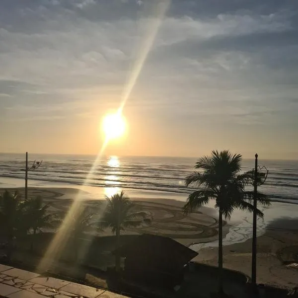 Apartamento Kitnet pé na areia centro de Mongagua位于蒙加瓜,享有海景,距离中心海滩(Centro Beach)有几步路,距离伊塔尼亚恩巴士站有22公里。内部提供私人停车位。 这家公寓配有1间卧室、平板电视、设施齐全的厨房以及1间带淋浴设施的浴室。这家公寓也提供1间浴室。