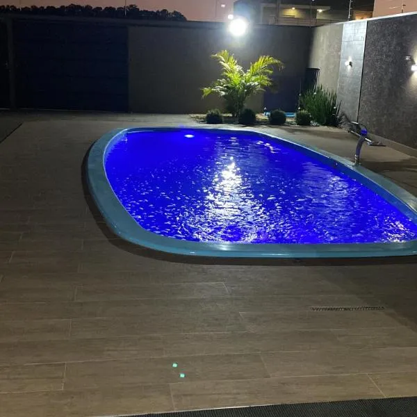 Casa Lago da Dinda 3位于圣埃斯皮里图-皮尼亚尔,提供共用休息室。这家度假屋提供免费私人停车位、共用厨房和免费WiFi。 这家空调度假屋配有3间卧室、起居室、带冰箱和咖啡机的设施齐全的厨房以及2间带浴缸或淋浴设施和吹风机的浴室。这家度假屋也为客人提供2间浴室。 维拉科波斯国际机场距离住宿有111公里。