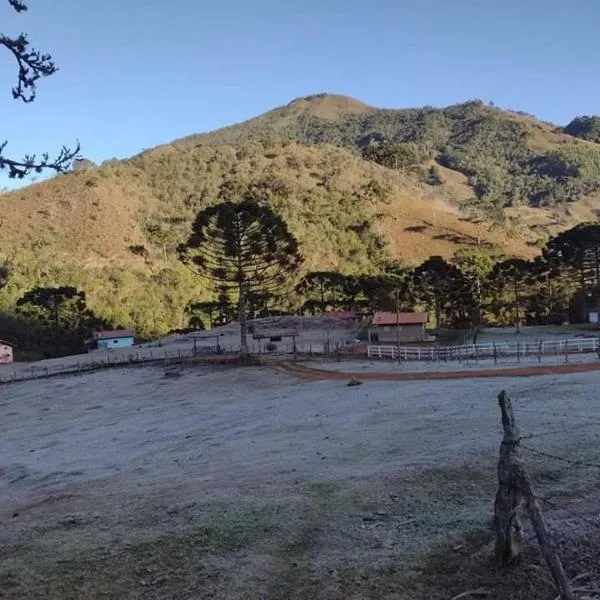 Chalé rústico Nhá Chica坐落于米纳斯吉拉斯州的Alagoa,拥有阳台,享有山景。这家住宿距离阿古利亚斯内格拉斯峰有44公里,配备花园和免费私人停车位。 这家小木屋提供1间卧室、带微波炉的设施齐全的厨房以及1间带淋浴设施的浴室。这家小木屋也配有1间浴室。 瓦尔吉尼亚机场距离住宿有175公里。