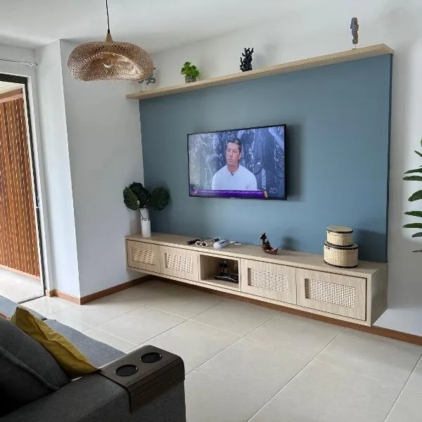 Apt 1/4 novo, ambiente aconchegante na Praia do Forte.享有花园景,提供酒吧和阳台,距离Baleia Jubart Institute研究所约有17分钟步行路程。这家住宿距离生态度假村海滩(Praia do Eco Resort)有8分钟步行路程,配备花园和免费私人停车位。