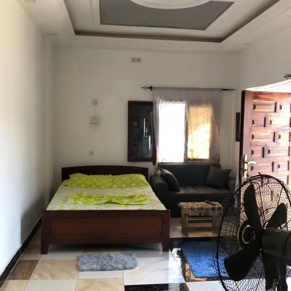 Studio Cosy au Centre de kintelé位于Brazzaville,提供露台,距离鹅爪森林保护区有19公里。这家空调住宿距离皮尔·萨沃格纳恩·代·布拉扎纪念馆有18公里,为客人提供免费WiFi,内部提供私人停车位。 这家公寓配有1间卧室以及1间浴室,配备平板电视。这家公寓也提供1间浴室。 马亚-马亚机场距离住宿有16公里。