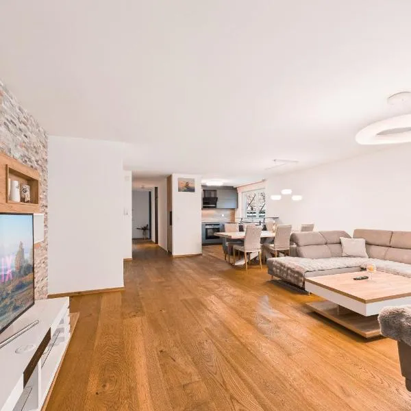 Alpine City Suite享有山景,提供花园和阳台,距离阿拉林冰川约有45公里。住宿提供免费WiFi,可以安排额外收费的私人停车位。 这家公寓享有市景,配备露台,配有2间卧室、起居室、卫星频道平板电视、设施齐全的厨房以及2间带淋浴设施和浴缸的浴室。这家公寓还配备休息区、洗衣机以及2间带免费洗浴用品的浴室。 这家公寓提供烧烤设施。客人可以在该地区体验徒步、滑雪和骑行。