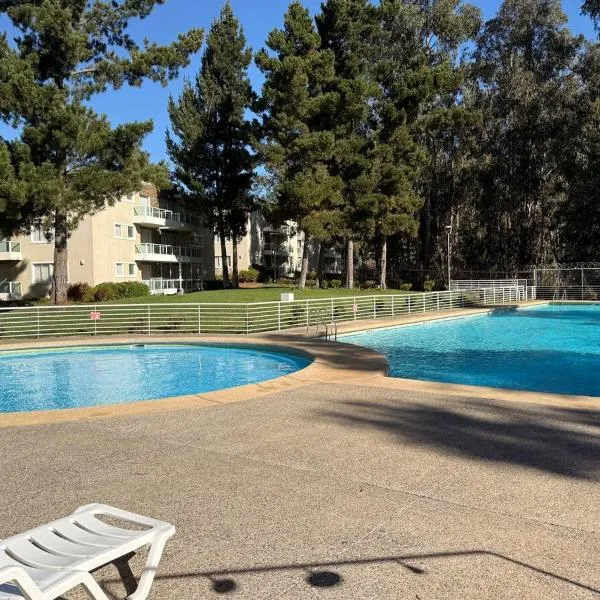 Featuring garden views, Depto. Nuevo Algarrobo patio privado is situated in Algarrobo, around 10 km from Isla Negra House. This apartment features a private pool, a garden and free private parking.