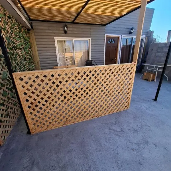 Departamento Ciudad de Caldera, Bahia Inglesa坐落于卡尔德拉,距离曼萨海滩(Mansa)有4分钟步行路程,配备户外游泳池、免费WiFi和24小时前台。这家自助式公寓拥有私人泳池、花园和免费私人停车位。 这家公寓享有花园景,配备阳台,配有2间卧室、起居室、卫星频道平板电视、设施齐全的厨房以及1间带淋浴设施和浴缸的浴室。1间浴室提供吹风机。...