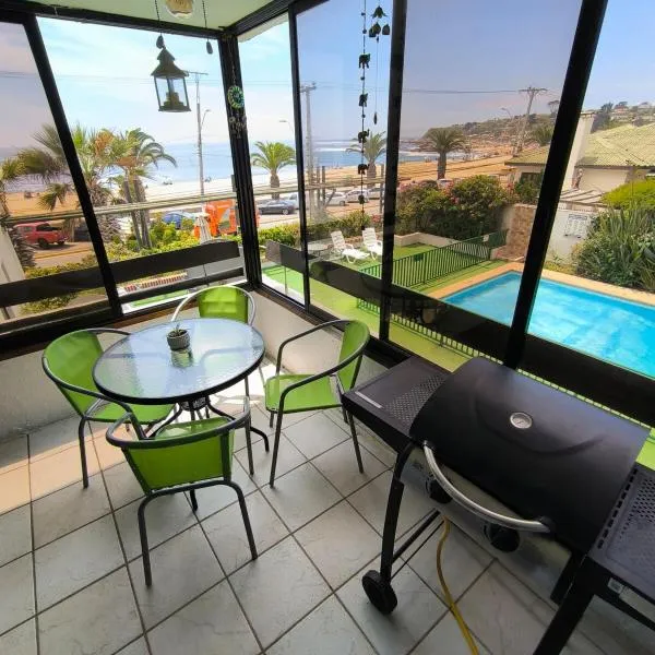 Departamento Cond. La Casona位于瓦尔帕莱索大区的埃尔基斯科,配有阳台。客人可以使用露台和按季节开放的室外泳池。 这家公寓配有3间卧室、厨房、平板电视、休息区和1间浴室。这家公寓也拥有1间浴室。 这家公寓距离拉斯孔奇塔斯海滩(Las Conchitas Beach)有8分钟步行路程,距离伊斯拉尼格拉-聂鲁达故居博物馆有5.3公里。