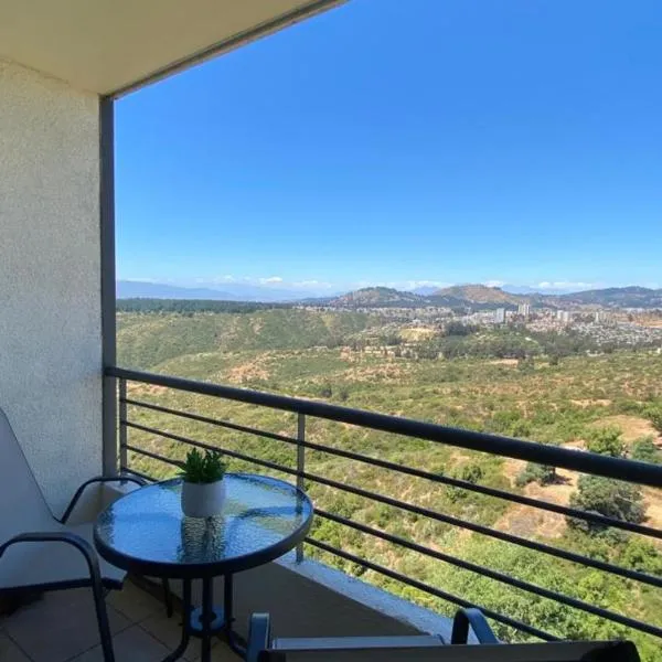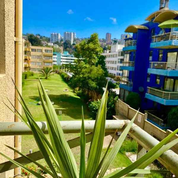 Condominio cumbres de reñaca ll享有花园景,提供阳台和电热水壶,距离瓦尔帕莱索体育俱乐部约有7公里。这家住宿距离维尼亚德尔玛巴士站有7.1公里,配备露台和免费私人停车位。 这家公寓拥有2间卧室、带有线频道的平板电视、带烤箱和微波炉的设施齐全的厨房以及2间带淋浴设施的浴室。2间浴室提供免费洗浴用品。