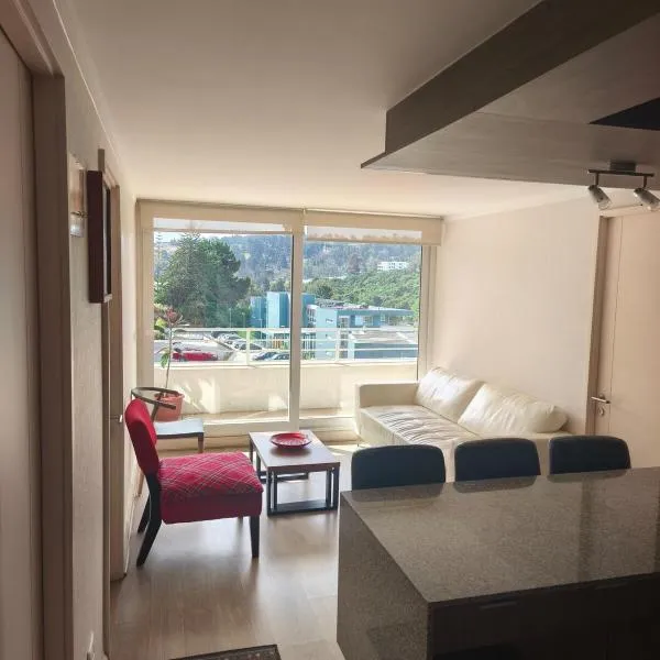 Departamento Reñaca Bajo位于维纳德马,配备私人泳池和阳台,享有花园景。这家住宿距离维尼亚德尔玛巴士站有8.8公里,提供露台和免费私人停车位。 这家公寓配有1间卧室、设施齐全的厨房和2间浴室。这家公寓也为客人提供2间浴室。 这家公寓距离孔孔沙丘有6.2公里,距离汽笛广场有6.8公里。