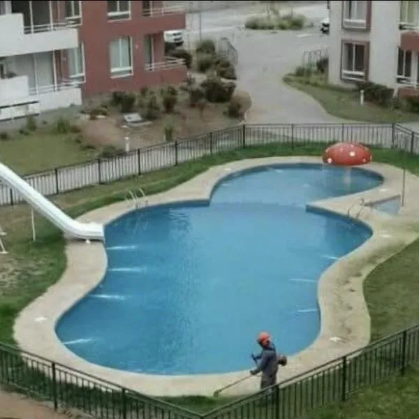 departamento con vista al mar en La Serena位于拉塞雷纳,配备带免费WiFi的池景客房,配有户外游泳池、花园和私家海滩。这家住宿距离埃尔法罗海滩(El Faro Beach)有8分钟步行路程,提供露台和免费私人停车位。 这家公寓提供2间卧室、1间浴室、床上用品、毛巾、平板电视、设施齐全的厨房以及海景阳台。1间浴室提供浴缸和吹风机。...