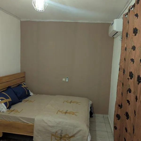 NINJA HOUSE Studio chic Le Turquois Doré位于雅温得,距离奥巴拉火车站仅有47公里,提供花园、露台和礼宾服务。这家空调住宿距离雅温得中央车站有8.7公里,为客人提供免费WiFi,内部提供私人停车位。 这家公寓配有1间卧室、带有线频道的平板电视、带冰箱和微波炉的设施齐全的厨房、洗衣机以及1间带淋浴设施的浴室。1间浴室提供热水浴池、免费洗浴用品、拖鞋和浴袍。