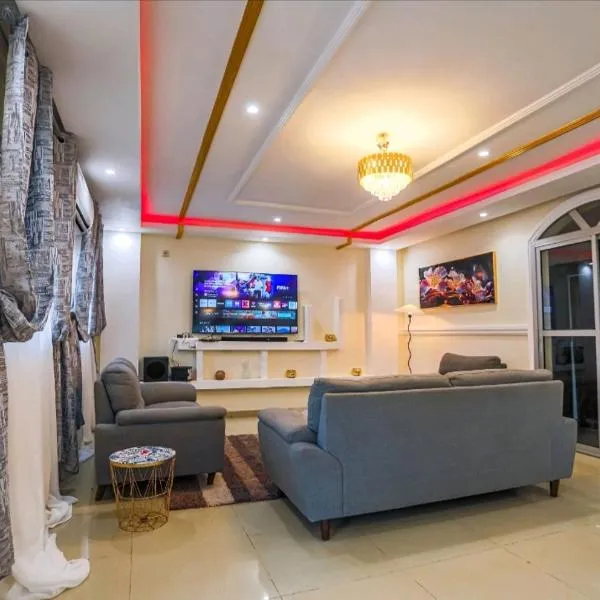 Cosy Home By Djoles位于雅温得,配备客房和露台。内部提供私人停车位。 这家空调公寓配有1间卧室、起居室、带冰箱和咖啡机的设施齐全的厨房以及1间带坐浴盆和淋浴设施的浴室。这家公寓还提供平板电视以及1间带免费洗浴用品的浴室。 雅温得-恩西马兰国际机场距离住宿有15公里。