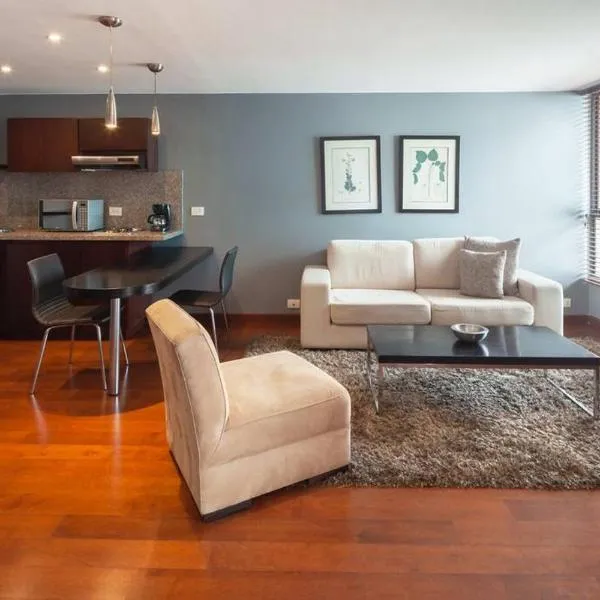 Expo Suites Parque Central Bavaria is situated in Bogotá´s financial district. It offers trendy purple interiors decorated with white orchids and rooms with free WiFi.