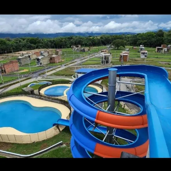 Alojamiento en Carmen de Apicalá坐落于Tolima的卡门阿皮卡拉,拥有花园。这家住宿距离Piscilago乐园有21公里,配备户外游泳池和免费私人停车位。 这家公寓提供3间卧室、2间浴室、床上用品、毛巾、带卫星频道的平板电视、用餐区、设施齐全的厨房以及池景露台。这家公寓还提供休息区、洗衣机以及2间带淋浴设施的浴室。 伊瓦格机场距离住宿有73公里。